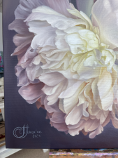 The painting depicts pink and white peonies, among which white peonies stand out. Their large, multi-layered petals open with amazing grace and ease, occupying a central place in the composition. White peonies amaze with their purity and sophistication, creating an impression of freshness and elegance.