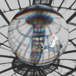 I create my digital artworks using various techniques. This image was created with a 3D designer program. I created a sphere with reflective, distorted surface. Then I put different backgrounds behind the sphere and observed the changes of the surface's structure. I cut out the sphere and use it for different themed montages.